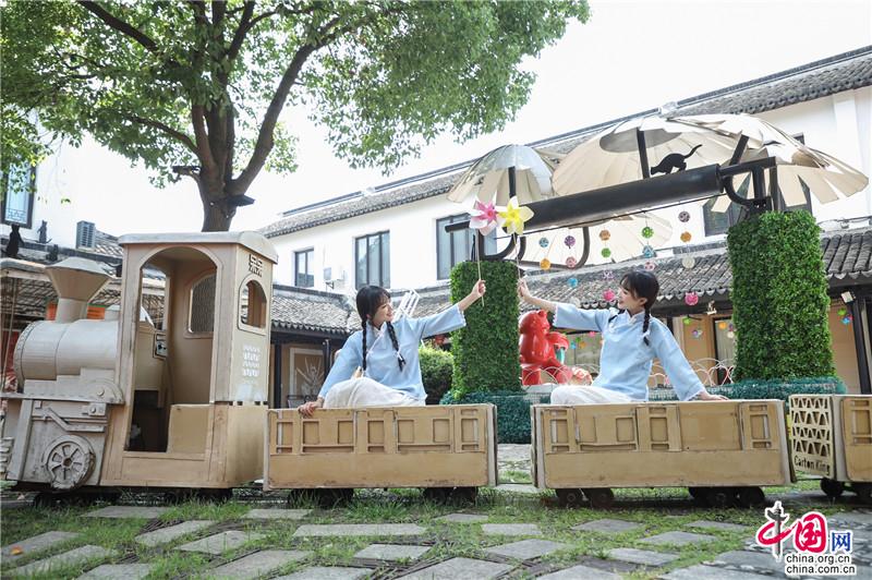 夏日遲遲至,古鎮(zhèn)緩緩行。坐一趟手搖船,穿行在23°的水巷,看陽光透過樹影落在水面上的斑駁,聽搖櫓聲聲撥動碧水的悠然,悄然經(jīng)過匆匆那年。赴一場紙箱王之約,穿梭在紙藝王國,吃一頓盈滿時光的紙上美食。坐上紙做的小火車放飛夢想,在紙箱王古郵局描繪出未來的藍(lán)圖。行走在貞豐文化街上,看貞豐十二坊的匠人匠心,觀水鄉(xiāng)周莊的人間煙火。走累了便去蘇繡藝舍感受蘇繡的獨(dú)特魅力,到爐韻沉香研習(xí)香道茶藝……一盞清茶一爐香,一衣帶水歸故鄉(xiāng)。