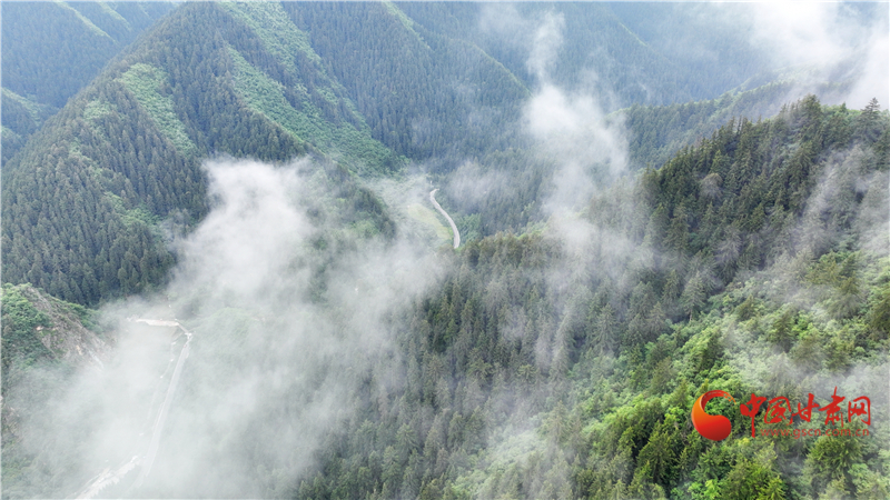 連續(xù)兩日秋雨綿綿,位于榆中縣的興隆山間云霧繚繞蔓延,隨著云霧不斷流動、飄浮,群峰也隨之千變?nèi)f化,宛如仙境。