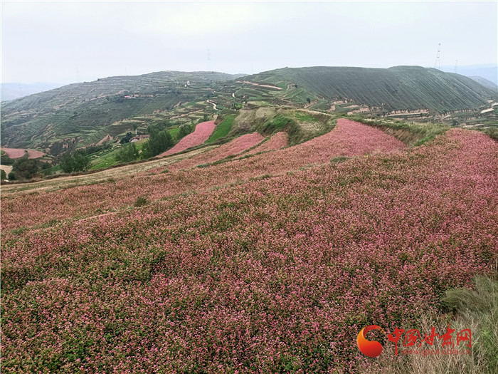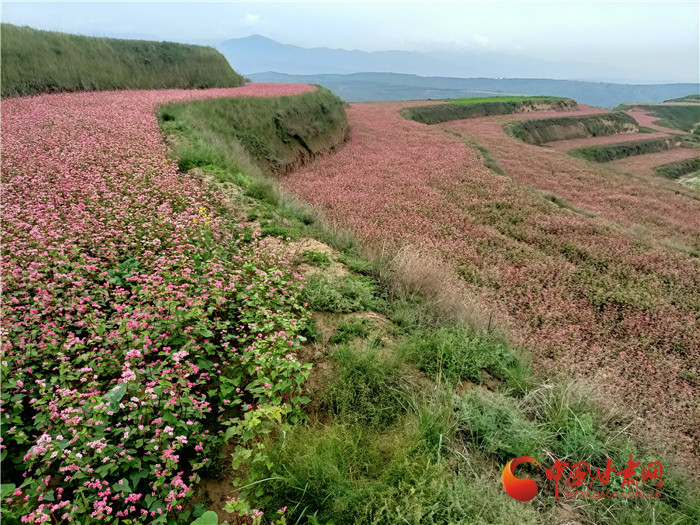 秋色漸濃,位于榆中縣甘草店鎮(zhèn)郭家灣村的蕎麥花兒開的正艷。
