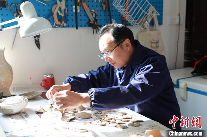 在工作站內(nèi),信陽市平橋區(qū)城陽城址管委會副主任劉勇也是修復組成員之一,今年也是他在城陽城工作的第18個年頭。