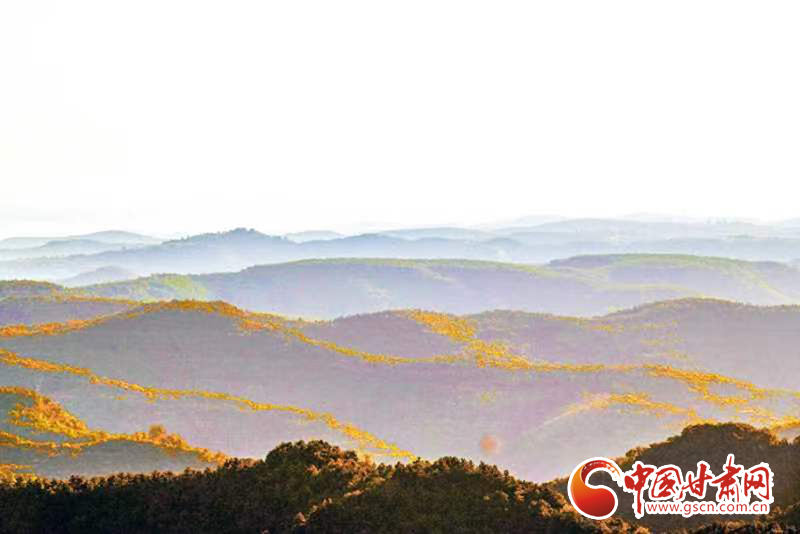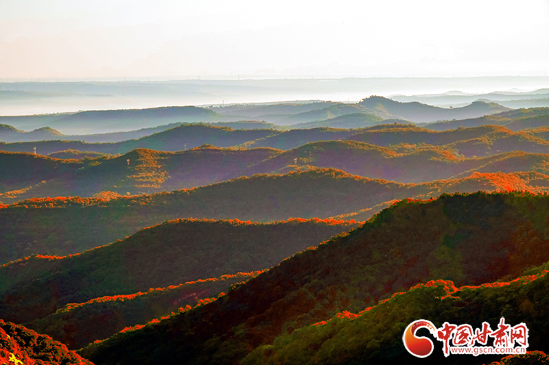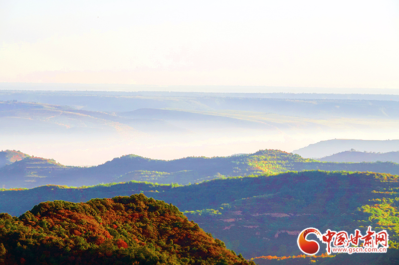 初冬時節(jié),在夕陽的映照下,平?jīng)鍪刑泼鄙绞〖壣止珗@云霧繚繞,山巒在云霧中若隱若現(xiàn)、如夢如幻,呈現(xiàn)出仙境般美景。