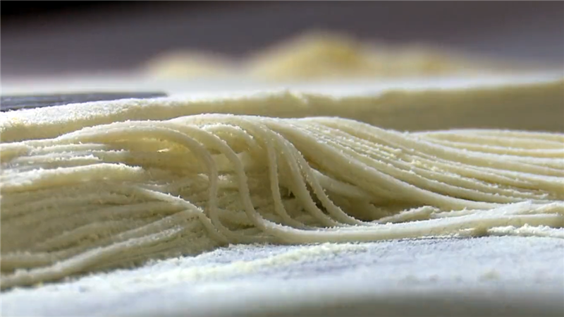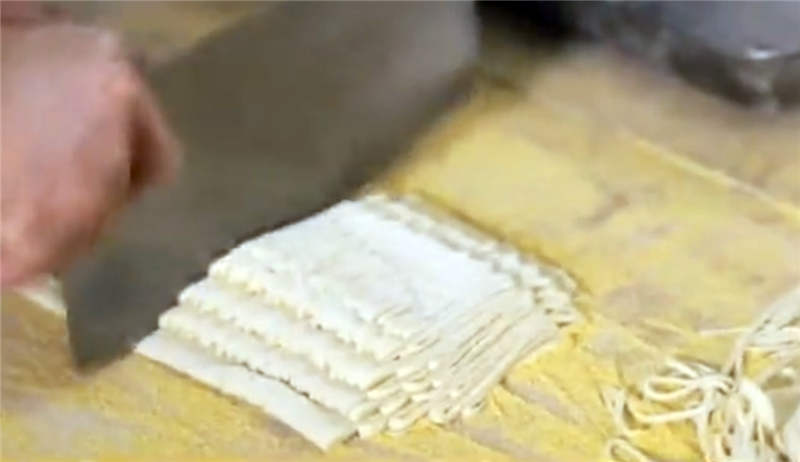揉面最為關(guān)鍵,揉好后便是切了,靈臺方言稱之為“犁”,講究眼到、心到、手到,寬窄相等,粗細(xì)合適。