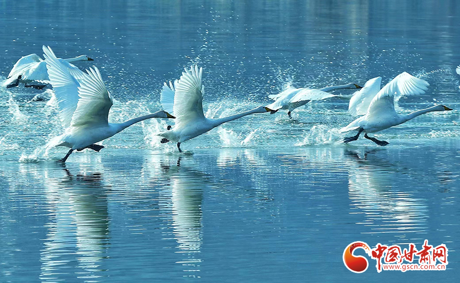 近日,位于蘭州市西固區(qū)達(dá)川鎮(zhèn)的三江口天鵝灘,陸續(xù)飛來(lái)天鵝越冬。在一平如鏡的水域,它們或安靜地棲息,或在水中暢游。