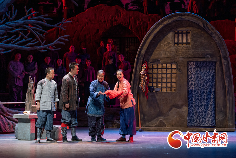 值得一提的是,全劇以隴東民歌為音樂基調(diào),強(qiáng)調(diào)質(zhì)樸、厚重,意在突顯地域的、民族的特色。交響樂隊(duì)中增加板胡、嗩吶、琵琶、大鼓等特色民族樂器。此外,在舞美上,采用虛實(shí)結(jié)合的手法,隴東黃土塬特定的地貌、獨(dú)特的地坑窯洞將會(huì)在舞臺(tái)上明確地展現(xiàn)給觀眾,大的背景舞美強(qiáng)調(diào)“實(shí)”,黃土塬,窯洞等整體構(gòu)成隴東黃土塬特有的地貌和農(nóng)家。藥店、團(tuán)部、山道等則“虛”化,虛實(shí)結(jié)合寫意式地將觀眾帶回那個(gè)年代。(甘肅省歌劇院供圖)