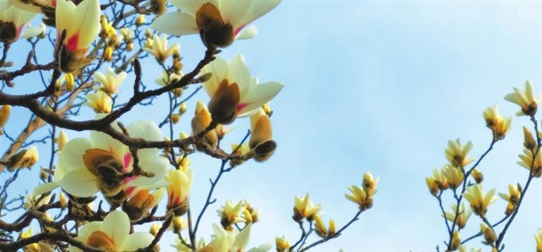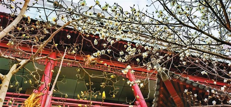 3月10日,記者途經(jīng)秦州區(qū)自由路玉蘭一條街時(shí)欣喜地看到,由東往西走,穿過(guò)刻有“秦風(fēng)在茲”的天水古城牌坊,滿(mǎn)巷漸次盛開(kāi)的玉蘭花一樹(shù)樹(shù)玉樹(shù)臨風(fēng),一朵朵冰清玉潔。平房民居的屋頂上、脊獸斗拱邊,橫橫斜斜“躺臥”著若干膚白肌潤(rùn)的花朵,借景為鄰靜觀細(xì)瞧,人與花似感心意相通,片刻間也能生出不少情趣來(lái)。