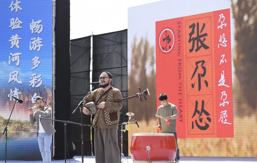 白銀市靖遠(yuǎn)籍民謠音樂(lè)人張尕慫和他的團(tuán)隊(duì)在旅游節(jié)上為觀眾演唱《沒(méi)有黃河我活不下》。多年來(lái),他始終堅(jiān)守初心,帶著作品向全國(guó)乃至全世界宣傳甘肅,宣傳家鄉(xiāng)白銀。喬麗霞 攝
