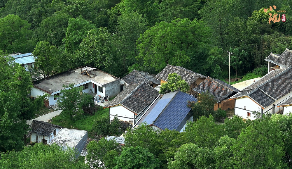 山水之間,一個個青瓦白墻、綠樹掩映,家家門前花草點(diǎn)綴、綠樹遮蔭。