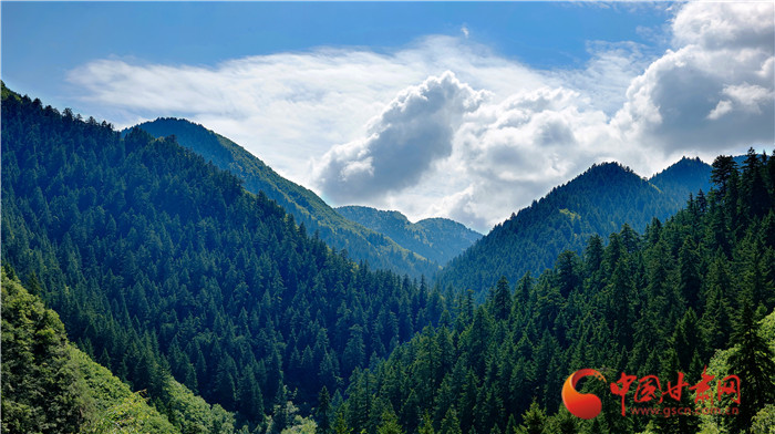 興隆山藍(lán)天白云遇蒼翠
