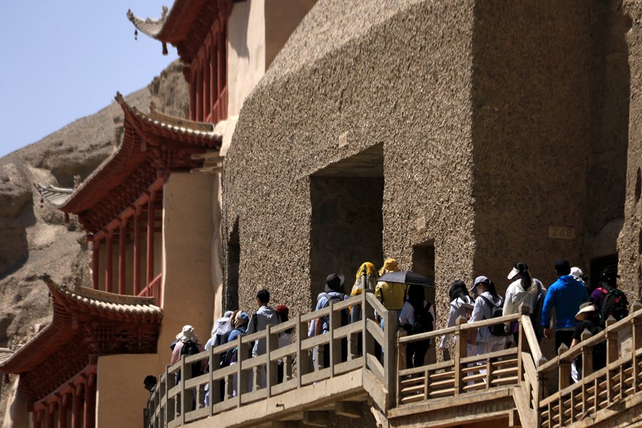 夏日時節(jié),眾多游客走進(jìn)絲路敦煌,欣賞石窟藝術(shù),觀看經(jīng)典演藝,感受敦煌文化。