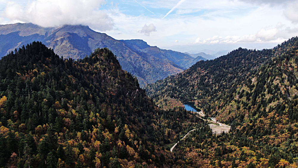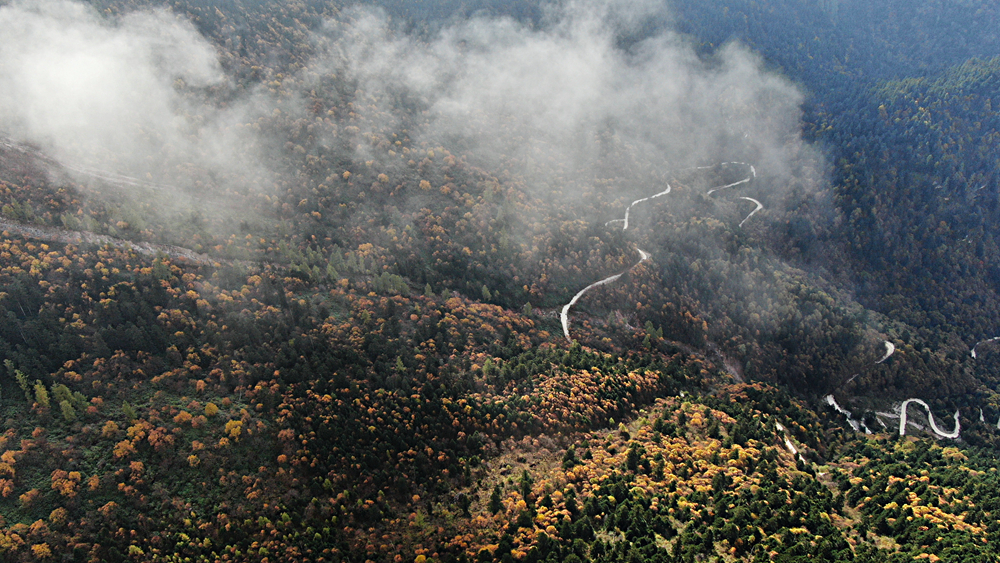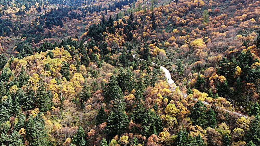金秋時節(jié),甘肅省隴南市宕昌縣官鵝溝森林公園層林盡染,斑斕如畫,吸引了不少游客前來游玩。新華網發(fā)(劉輝 攝)
