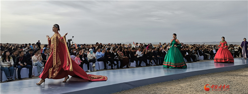 走秀的模特也表示,在玉門關(guān)下走秀很特別,行走時有清風在面頰拂過,特別有感覺,大地舞臺厚重寬廣更有時尚感。