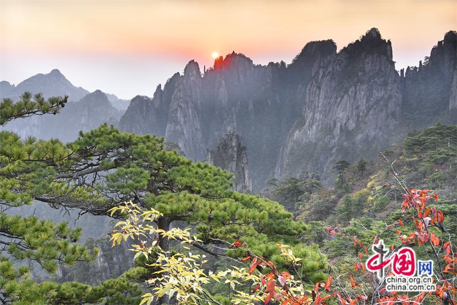 10月以來黃山風(fēng)景區(qū)已進(jìn)入秋色斑斕季節(jié),是一年中色彩最豐富的季節(jié),晨曦暮落,處處如畫,古松與秋果相隨,青紅交織,金黃色的樹葉隨秋風(fēng)在空中飛舞,或飄落在游步道上、或散落在峽谷中,處處生機(jī)盎然,令人流連忘返,明代旅行家徐霞客是這樣贊美黃山的“楓林相間,五色紛披,燦若圖繡”。