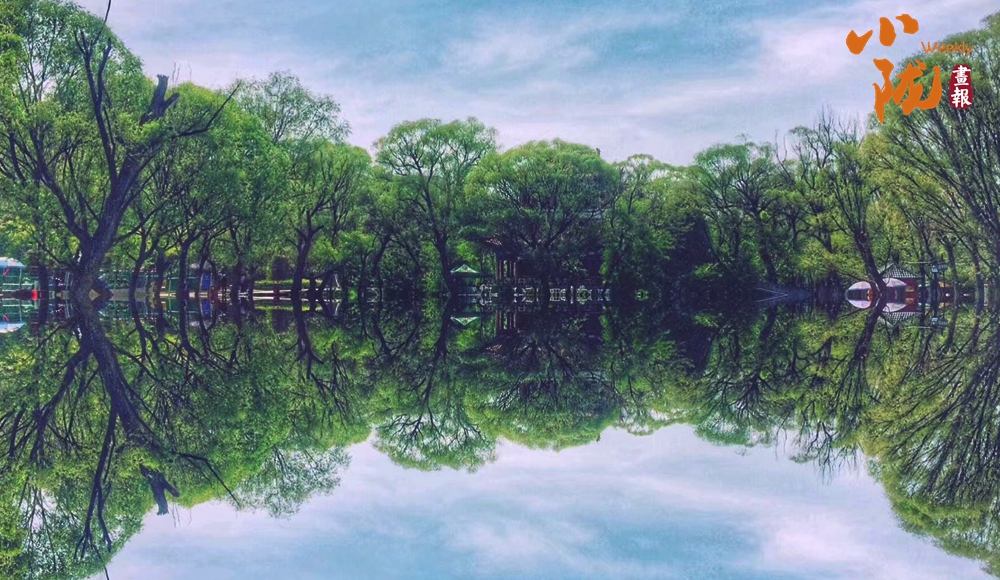 輕而浪漫的柳條,綠意傲然的柳樹,曼妙唯美的倒影。