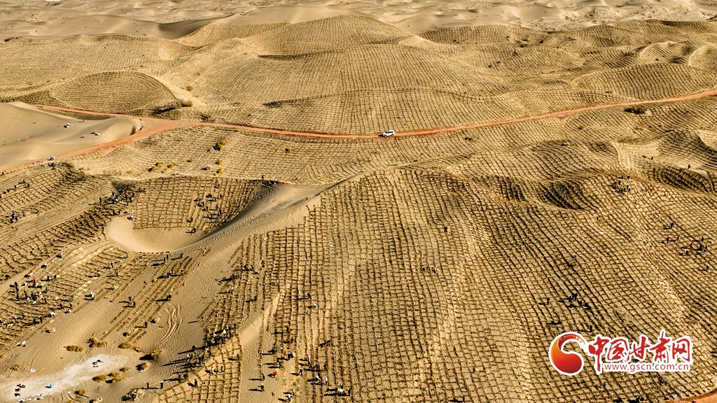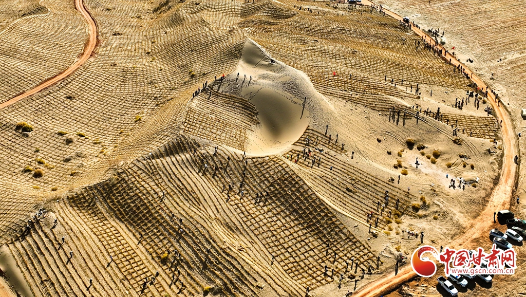 10月31日,河西走廊——塔克拉瑪干沙漠邊緣阻擊戰(zhàn)張掖區(qū)域戰(zhàn)役正式啟動(dòng),張掖市千名市民來到高臺(tái)縣巴丹吉林沙漠南緣西沙窩風(fēng)沙口治理區(qū)共同義務(wù)壓沙障。