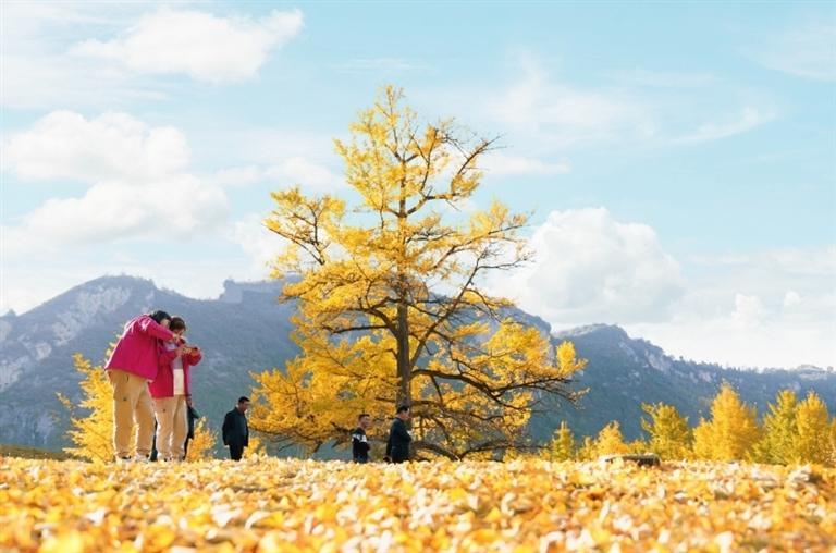 金秋時(shí)節(jié),走進(jìn)徽縣嘉陵鎮(zhèn)田河村,恍若走進(jìn)了金色的仙境。153棵古銀杏樹(shù)滿身金黃,一地落葉似“金色地毯”。銀杏樹(shù)下,品銀杏茶、吃銀杏果、享銀杏風(fēng)情,美不勝收,吸引眾多游客前來(lái)拍照打卡。如今,美麗風(fēng)景變身“美麗經(jīng)濟(jì)”,當(dāng)?shù)匾劳星赉y杏資源優(yōu)勢(shì),引進(jìn)“銀杏夢(mèng)谷”旅游項(xiàng)目,打造集旅游觀光、生態(tài)康養(yǎng)、休閑娛樂(lè)、農(nóng)特產(chǎn)品銷(xiāo)售為一體的美麗鄉(xiāng)村旅游示范點(diǎn),讓千年古樹(shù)煥發(fā)新的生機(jī)。本報(bào)記者 冉創(chuàng)昌 高瓊 攝