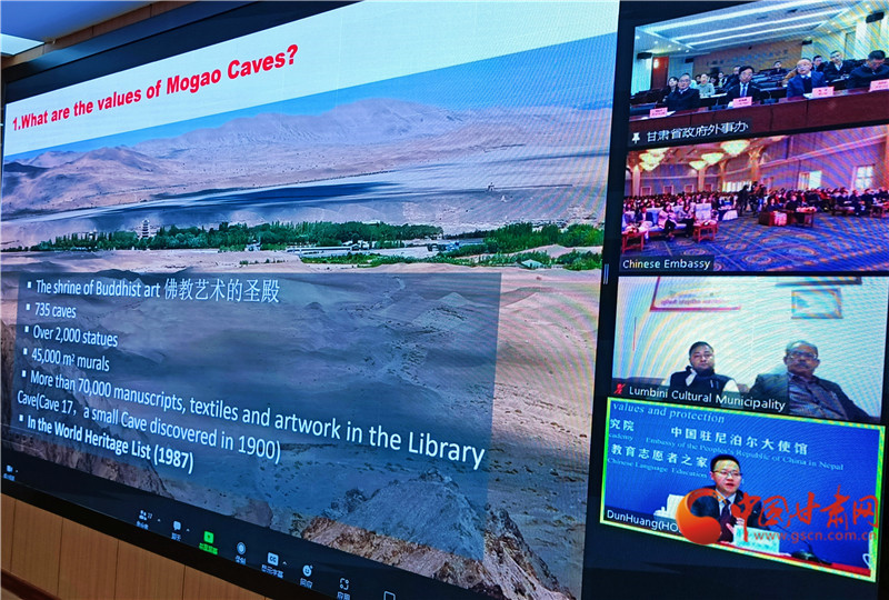 中國甘肅網(wǎng)12月4日訊(西北角·中國甘肅網(wǎng)記者 宋芳科 )12月4日,“敦煌文化環(huán)球連線——走進尼泊爾”在蘭州、敦煌、尼泊爾三地線上線下同步舉辦。中國駐尼泊爾大使陳松、尼泊爾教育與科技部部秘普拉米拉·黛維·巴吉拉恰利亞,酒泉市委常委、敦煌市委書記石琳、尼泊爾藍毗尼文化市市長薩魯丁·穆薩爾曼等應(yīng)邀出席活動并講話,活動由甘肅省政府外事辦主任張寶軍主持。