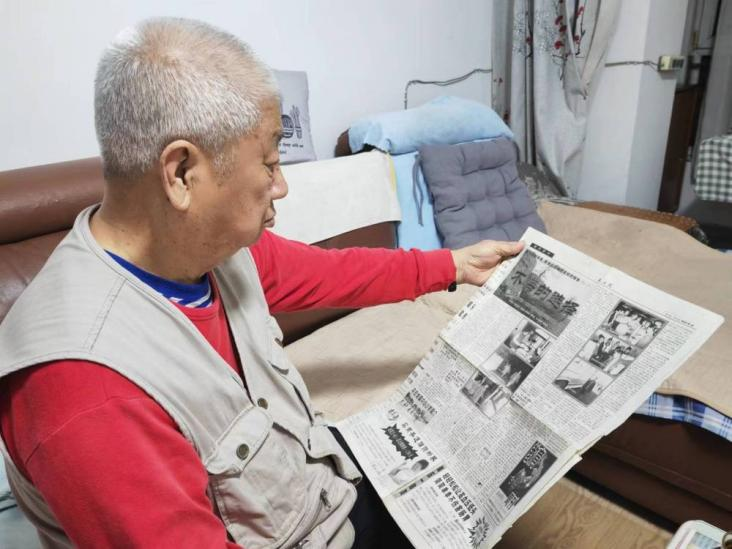78歲的邢作民在看23年前魏彤欣報道他的事跡。