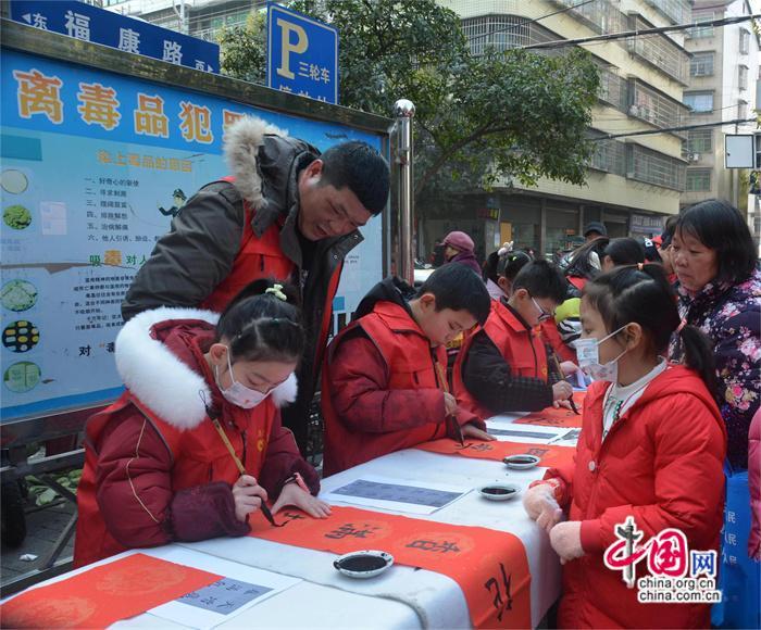 “在新春佳節(jié)之際,孩子們在人群熙攘的環(huán)境中書寫、贈送春聯(lián)特別有意義,既鍛煉了孩子們現(xiàn)場書寫的能力與勇氣,又培養(yǎng)了他們傳遞、分享快樂的良好習慣,也營造了濃濃的節(jié)日氣氛和滿滿的年味。”在活動現(xiàn)場,陳志龍一邊指導一邊介紹說。