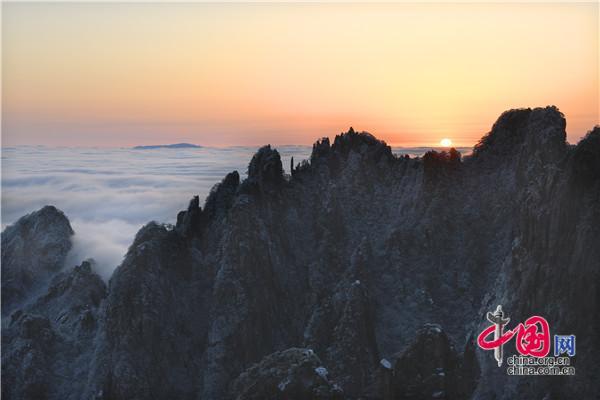 原標(biāo)題:只有一個黃山:雪后日出、云海同現(xiàn) 美輪美奐