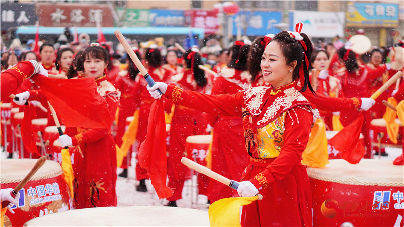 演員們身著喜慶艷麗服裝,頭戴五彩頭飾,手舞彩扇,腰系彩帶,精神抖擻,敲鑼打鼓,盡情表演,贏得陣陣掌聲,現(xiàn)場(chǎng)觀眾紛紛拿手機(jī)、相機(jī),記錄這一刻的熱鬧與喜慶。