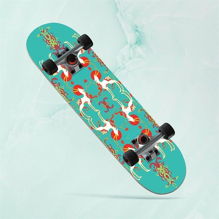 九色鹿滑板——以敦煌壁畫與極限運(yùn)動(dòng)相結(jié)合的設(shè)計(jì),不僅讓傳統(tǒng)文化玩出了新花樣,同時(shí)掀起了一場(chǎng)以敦煌文化為代表的傳統(tǒng)文化消費(fèi)潮。九色鹿滑板,既代表年輕人的活力和動(dòng)力,又融合了神秘敦煌的藝術(shù)風(fēng)格。以九色鹿為創(chuàng)意靈感的敦煌九色鹿系列聯(lián)名滑板,用扁平插畫風(fēng)格進(jìn)行再創(chuàng)作,用纖細(xì)柔美的線條凸顯九色鹿的優(yōu)美身姿,既保留傳統(tǒng)圖案的華麗精巧,也符合現(xiàn)代審美。