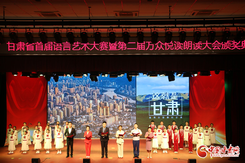 在展演環(huán)節(jié),參賽選手們用豐富多彩的語言表演形式,聲情并茂的舞臺演繹,為觀眾呈現(xiàn)了一場精彩絕倫的視聽盛宴,贏得了現(xiàn)場觀眾經(jīng)久不息的掌聲,頒獎儀式在合誦《這就是甘肅》中落下帷幕。