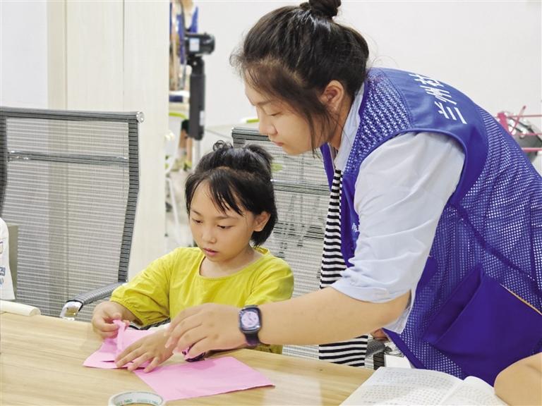 來自天津工藝美術(shù)學(xué)院的大二學(xué)生張如晉玄成為了蘭州小草愛心社會工作服務(wù)中心的一名社工,看管社區(qū)暑期托管班