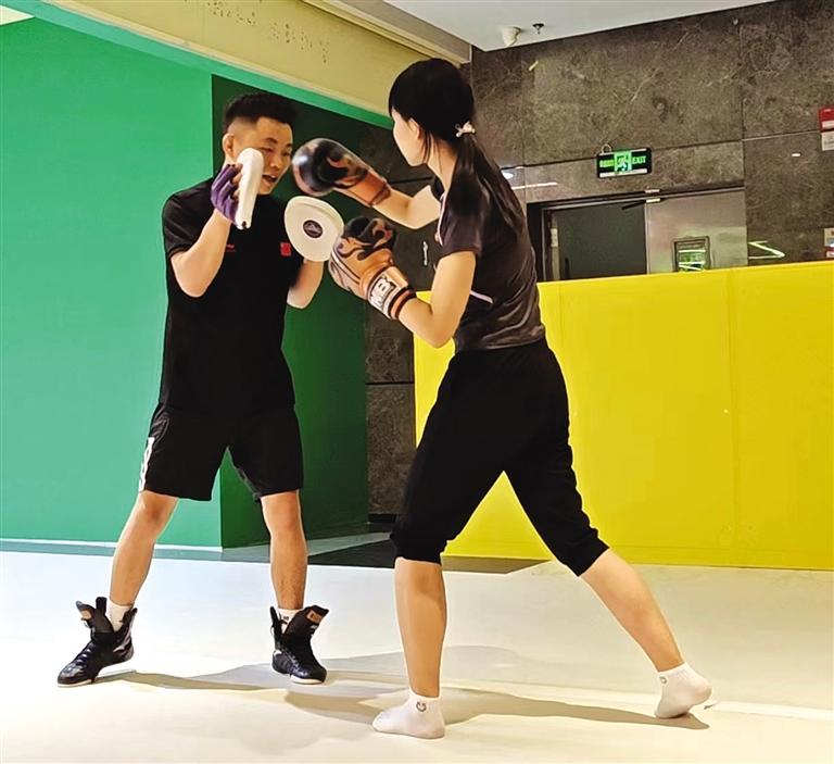 在實(shí)習(xí)之余,李王嘉楹報(bào)了一個(gè)自由搏擊課程來調(diào)劑生活。“學(xué)習(xí)防身術(shù)還能強(qiáng)身健體。”李王嘉楹說,在訓(xùn)練過程中,跟著教練一步一步訓(xùn)練,揮拳的那一刻,可以把所有的情緒都發(fā)泄出來,一場下來身心放松。話語中洋溢著自我提升的渴望和對未來的憧憬。