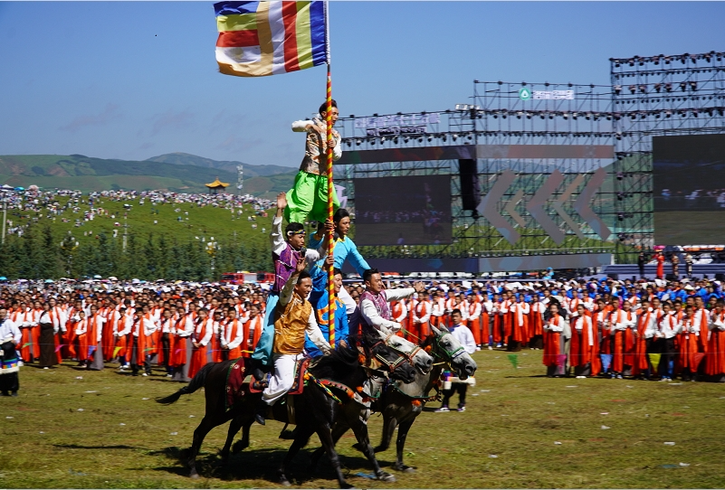草原騎手乘著矯健的駿馬高舉著鮮艷的五星紅旗從主席臺(tái)前奔馳而過(guò),讓在場(chǎng)的數(shù)萬(wàn)觀眾贊嘆不已,呈現(xiàn)出一個(gè)絢麗多彩的甘南、和諧穩(wěn)定的甘南、朝氣蓬勃的甘南、包容開(kāi)放的甘南、團(tuán)結(jié)奮進(jìn)的甘南。