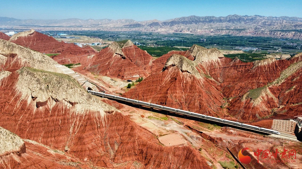 蘭新高鐵全長(zhǎng)1786公里,東起蘭州,途經(jīng)青海西寧后穿越河西走廊,經(jīng)張掖、嘉峪關(guān)后入疆。蘭新高鐵穿越河西走廊山川草甸、大漠戈壁。這條世界上一次性建成里程最長(zhǎng)的高鐵因沿線絕美風(fēng)景被公眾所熟知,被眾多旅客稱為“最美高鐵”。