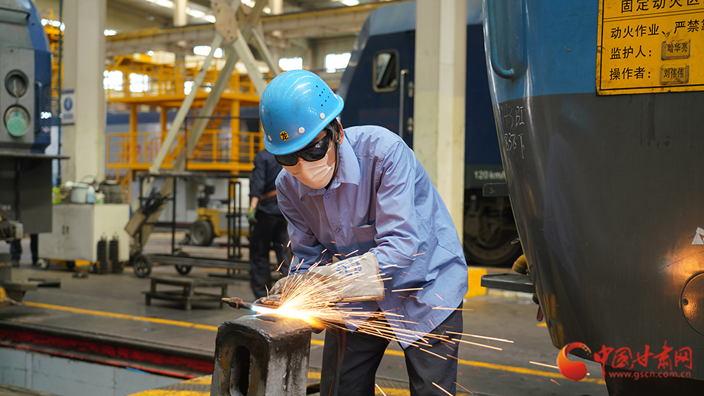 身穿長袖工作服、腳蹬勞保鞋、頭戴藍色安全帽,手上戴著電焊專用防護手套……蘭州鐵路局蘭州西機務段西整備車間電焊班組內,鐵路“焊將”劉偉偉在火花四濺、煙霧彌漫的工作臺位間來回穿梭,一點一點對機車車鉤鉤尾墊進行焊修。