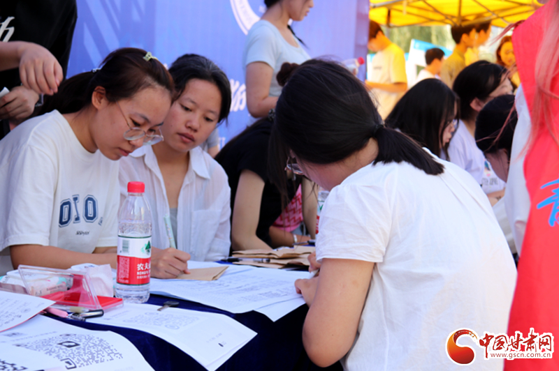志愿者正在引導(dǎo)學(xué)生和家長(zhǎng)