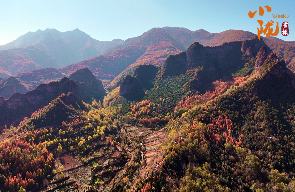 一覽眾山小,那原本就斑斕多彩的座座山巒,此刻更是被秋天賦予了更加豐富的色彩,像披上了一層絢麗的衣裳。
