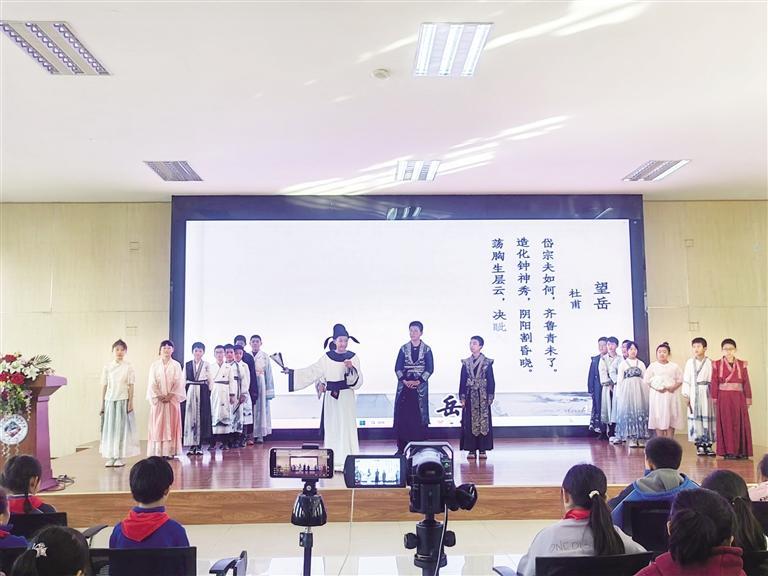活動(dòng)現(xiàn)場(chǎng),燈光柔和,氛圍莊重而溫馨。舞臺(tái)上,教師與學(xué)生代表們身著古裝,仿佛將觀眾帶入了千年前的唐朝。他們的表演深情而投入,每一個(gè)動(dòng)作、每一句臺(tái)詞都充滿了對(duì)杜甫及其時(shí)代的敬意。