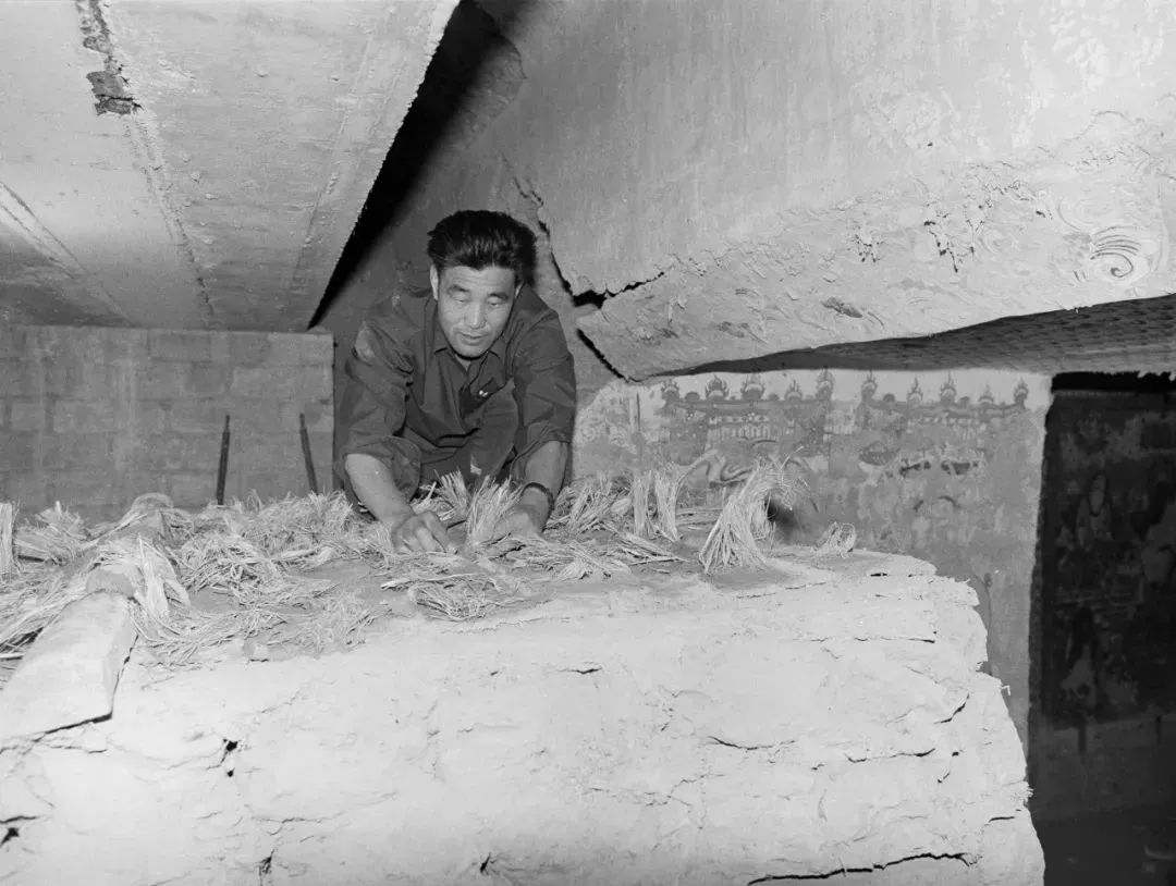 因?yàn)榻?jīng)費(fèi)緊張,我們于是自己想辦法,到洞窟前面的樹(shù)林里面去砍伐死樹(shù),自己加工制作遷移壁畫(huà)的模型。采用單層壁畫(huà)揭取的鋸取法,把甬道口內(nèi)外連接前室和主室的表層壁畫(huà)分割揭取下來(lái),用夾板固定揭取下來(lái)的壁畫(huà)層,防止壁畫(huà)變形、破裂。然后從甬道口內(nèi)外兩側(cè)由上而下,拆除和鋸割兩層壁畫(huà)之間的土坯、泥層。