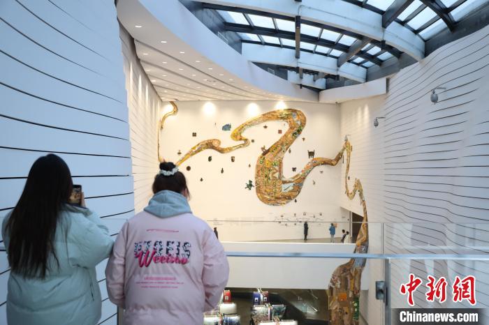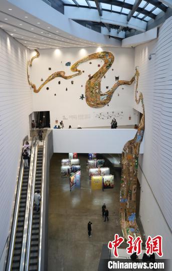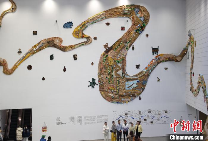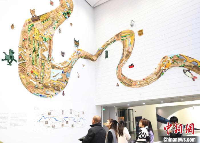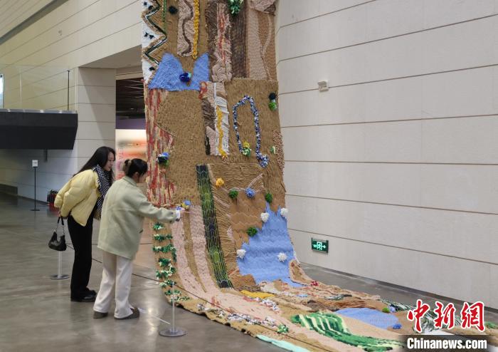 12月8日,市民在寧夏銀川當(dāng)代美術(shù)館欣賞“奔流的舞姿:藝起織造母親河”藝術(shù)展。當(dāng)日,“奔流的舞姿:藝起織造母親河”公益項目藝術(shù)展在銀川當(dāng)代美術(shù)館正式對公眾開放。該項目匯聚了黃河兩岸200余位織手的巧作,按照黃河特點和視覺審美拼接和織造,織造出一個極具視覺效果的“大河”,通過藝術(shù)的橋梁,展示奔涌黃河的優(yōu)美舞姿和不息精神,同時激發(fā)社會各界對黃河生態(tài)保護(hù)的共識與行動。中新社記者 于晶 攝