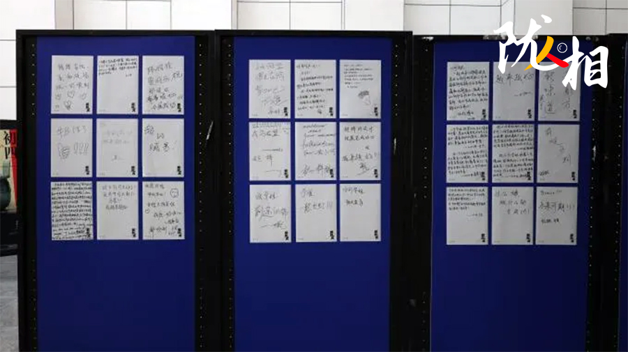 整體被搭建成“S”形的展區(qū),借鑒了博物館的陳展布局,讓參觀者不必走回頭路;展區(qū)第二部分陳列著各種文創(chuàng)玩偶的展臺赫然入目,讓人驚喜連連;展區(qū)外圍的留言墻,不僅有備好的A4紙,還貼心地粘上了馬克筆,方便觀眾留言……來參觀的人,即便對藝術(shù)不敏感也能被設(shè)計(jì)者的細(xì)心和創(chuàng)意輕松打動。