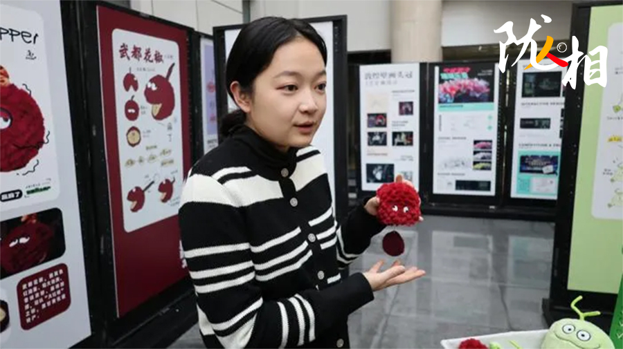 不僅是展區(qū)布置,黃小可的作品處處體現(xiàn)出令人耳目一新的細(xì)節(jié)。“我在設(shè)計(jì)它時想到了通感的表現(xiàn)手法,將花椒‘麻’的特點(diǎn)用觸覺來實(shí)現(xiàn)。”