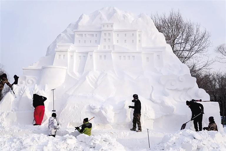 從滑雪場(chǎng)激情馳騁之后,便前往棲云田園小鎮(zhèn)。這里有著豐富多彩的冰雪活動(dòng),雪雕區(qū)里形態(tài)各異、栩栩如生的雪雕作品令人嘆為觀止。