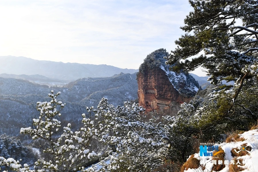 雪后初霽的麥積山宛如仙境。來(lái)源:新華網(wǎng)