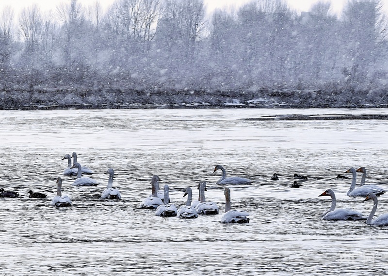 近日的一場(chǎng)降雪讓甘肅張掖黑河濕地國(guó)家級(jí)自然保護(hù)區(qū)高臺(tái)段銀裝素裹,在此棲息的大天鵝盡情在雪中引頸高歌、嬉戲歡鬧、振翅飛翔,成為一道亮麗的生態(tài)美景。