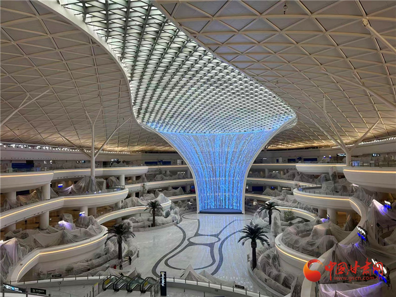 目前,口岸查驗設(shè)施基本完成;綜合交通中心工程土建安裝、裝飾裝修工程全部完成,容納3520個停車位;信息大樓工程核心機房設(shè)備、弱電系統(tǒng)、裝修全部完成;機場業(yè)務用房、安檢護衛(wèi)用房、值班宿舍、國際國內(nèi)貨運庫等附屬工程全面建成;綜合管廊、場區(qū)道路全線貫通;如意廣場、主進場道路等場區(qū)綠化苗木基本栽植完成。