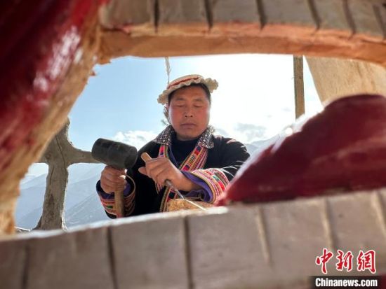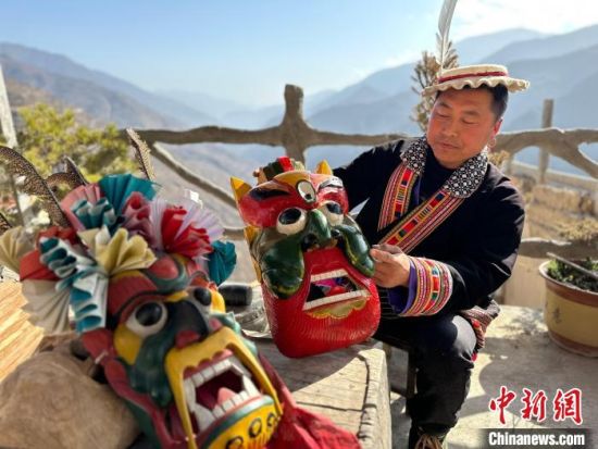 雕刻、打磨、上色……甘肅隴南市文縣鐵樓藏族鄉(xiāng)強曲村,白馬人薛剛一家四代人都精于木工。日前中新網(wǎng)記者走訪村子時,薛剛坐在自家院子里,伏案制作池哥晝所用面具。池哥晝是白馬人保留最完整、最具特色民族舞蹈,面具是重要道具之一。薛剛制作的面具不僅用于周邊村子的池哥晝中,而且被廣州、上海等地的客商購買收藏。他時常將自己的想象融入面具中,用心打磨使其更具“靈氣”。他說,白馬人中從事面具雕刻的手藝人不多,最近他物色了一個“00后”徒弟,對方興趣濃厚,希望將這門手藝保護傳承好。圖為薛剛在院子里雕刻面具。閆姣 攝