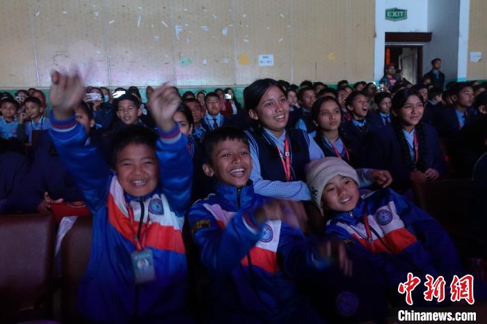 2月20日,中尼跨國(guó)新春文藝晚會(huì)在尼泊爾博克拉舉行,尼泊爾學(xué)生在聽到博克拉國(guó)際機(jī)場(chǎng)開通首條定期國(guó)際航線時(shí)歡呼雀躍?!≈行律缬浾?nbsp;崔楠 攝