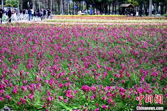 3月16日,福州花海公園魯冰花、小蒼蘭、油菜花等鮮花盛放,吸引了許多民眾前來(lái)漫步賞花,享受春天美好時(shí)光。中新社記者 張斌 攝