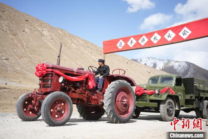 紅色“55輪式拖拉機(jī)”名叫“鐵牛”,前杠上寫著“出生年月”:1979年10月。微電影《五十七公里》中,張?zhí)煳妮d著戲中主持修路的陶書記,在牧民們的歡呼雀躍中,將它開進(jìn)通車典禮現(xiàn)場(chǎng)。