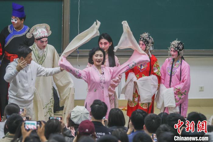 2024年3月,江西南昌,南昌大學贛劇藝術(shù)鑒賞課堂上,國家級非物質(zhì)文化遺產(chǎn)代表性項目“贛劇”代表性傳承人陳俐正在給學生上課。(資料圖)劉力鑫 攝