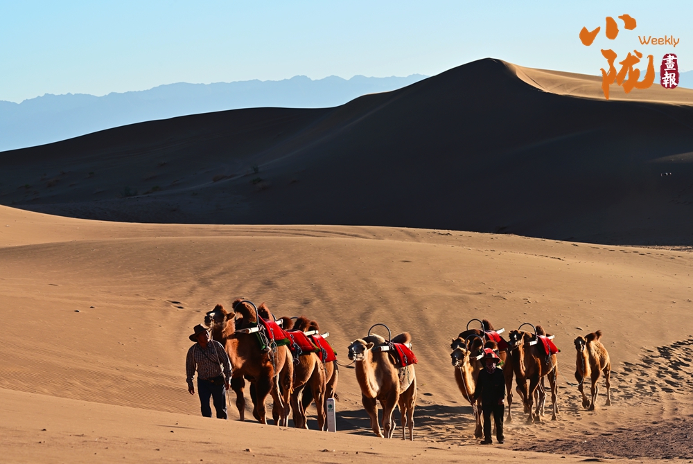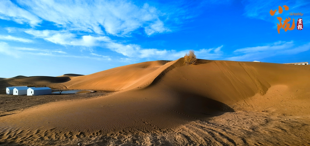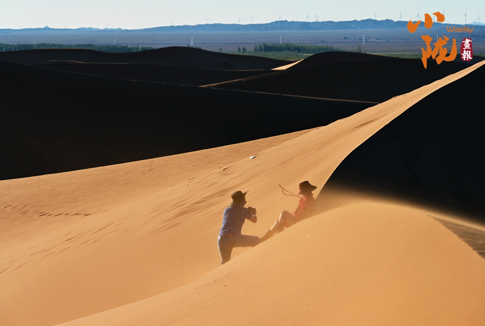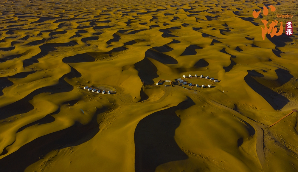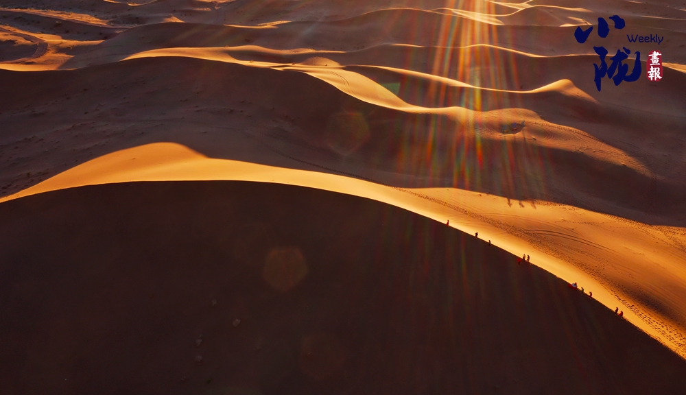 夕陽西下,極目遠(yuǎn)眺,在余暉照耀下,連綿起伏的沙丘似金色的海浪,一波接著一波,涌向天際。那細(xì)膩的沙紋,在陽光的輕撫下,宛如歲月鐫刻的痕跡,每一道褶皺都藏著故事。