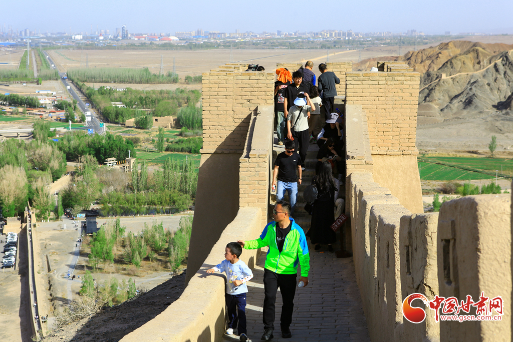 “五一”假期,甘肅省嘉峪關(guān)懸壁長城旅游景區(qū)迎來了客流高峰,景區(qū)內(nèi)游人如織,熱鬧非凡。來自五湖四海的游客們紛紛慕名而來,踏上這段陡峭險峻的懸壁長城,親身體驗其獨特的雄壯偉岸。他們站在城墻上,極目遠(yuǎn)眺,盡情領(lǐng)略著古長城所獨有的壯麗自然景觀與深厚歷史底蘊。