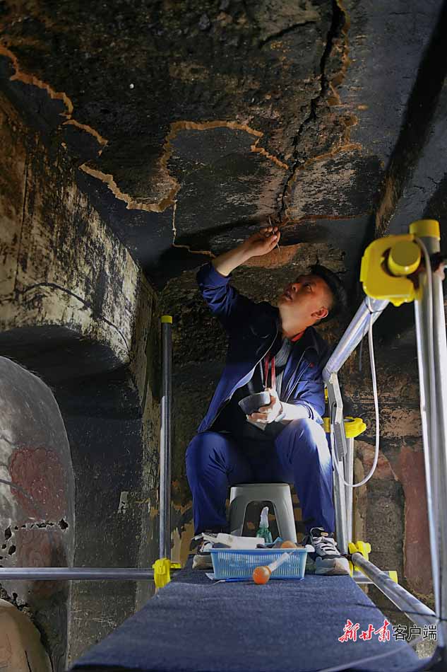 石窟外的時(shí)間流過千年,加之地處多雨林區(qū),文物保護(hù)變得極為不易,塑像和壁畫容易出現(xiàn)空鼓、開裂、脫色等病害。為保護(hù)好麥積山石窟,他們堅(jiān)守在山野之間,與寂靜洞窟為伴,不斷更新文物保護(hù)方式,守護(hù)著這些珍貴的歷史文化瑰寶。